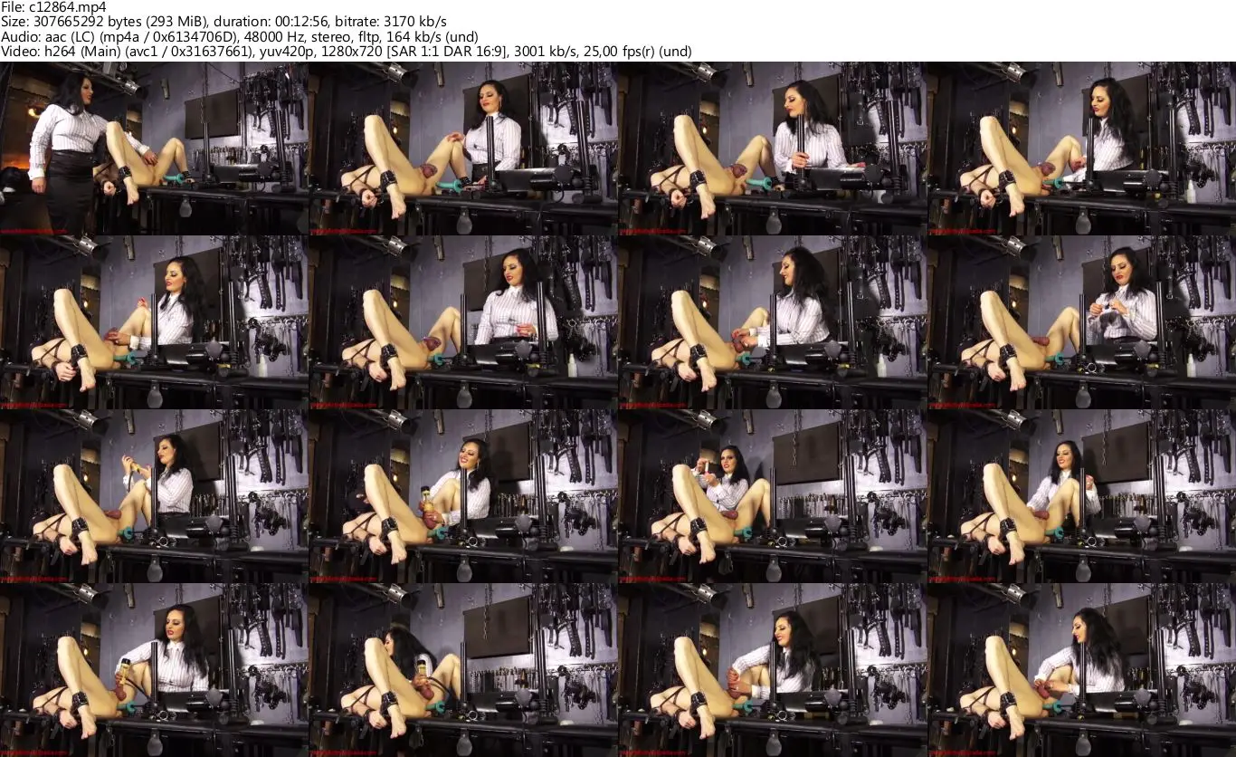 Last two weeks I have been on tour in Belgium and the UK. As My interest was captured by other males offering themselves to Me as slaves, My personal slave has mostly remained neglected, with his chastity device remaining locked this whole time. Today I found some interesting toys in the dungeon I rented in London, and I want to test them one My slave. He will finally have the chance to have a release, with the help of a fucking machine and a milking machine. I strapped him to the bondage table, with his legs spread wide, leaving his groin exposed. First I want to see the fucking machine in action, so, before even taking off My slave's chastity, I put a condom on the dildo, shove it in his tight ass and start the machine. It's delightful to see how the dildo goes in and out of his ass, how tense this makes him, partly because of the pain it causes, partly because he likes it. I can increase the speed and make him scream, or I can reduce it, and you can see how the pleasure takes over and he softens on the table. When I take off his chastity, he is already hard. Now it's time for the milking machine to come into action. I chose the smallest tube, it will have the most powerful effect. Indeed, it took less than half a minute to bring him close to orgasm using both machines. In the moment I see he is close to cumming, I take the milking machine off his cock and watch him fill his condom with a generous load of cum several seconds later, while he is still being fucked by the other machine. Oops, I ruined his orgasm, again. Now he has to clean his mess, meaning I empty his condom in his mouth, and put another one on his still quite hard cock. I know he's sensitive now, after cumming, but I want to milk him properly, so the machines will continue to do their job regardless of his discomfort. And a wonderful job they do, making him cum again in a matter of minutes, even though his cock began to soften from the pain. Another ruined orgasm, and another load of cum to go in the slave's mouth. Now I'm pleased, and I'm getting bored. So I put his chastity cage back on and leave the slave there, tied up and helpless, with the fucking machine still drilling his ass. I have more interesting things to do now...