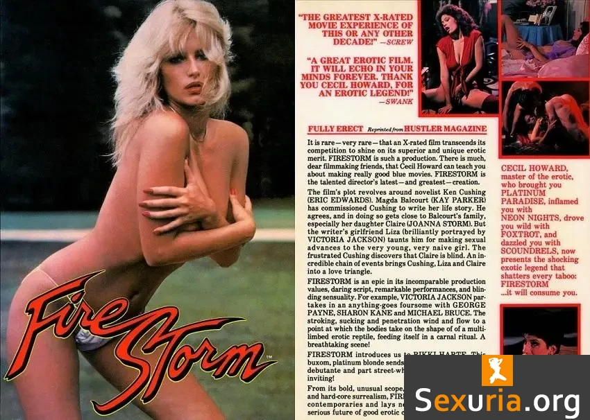 Down on his luck author Kenny Cushing (Eric Edwards) finds himself hired by ludicrously wealthy Magda Balcourt (Kay Parker) to ghost-write her autobiography. Along with husband Lee (John Leslie), she's apparently 'rolling in oil' though their involvement in shady dealings with powerful people will cost them dearly before the films over. Installed in the Balcourt mansion by Magda, who has plans other than dictating her life story and refuses to take no for an answer, Kenny sneaks out in the middle of the night for drinks at a bar where his former girlfriend Liza (Tina Marie) works as an exotic dancer. Their relationship ended abruptly when Ken caught her cheating in the awesome award-winning 'red scene'. The passion's quickly rekindled though, with Liza seeking to add some spice to their already incendiary lovemaking by forcing Kenny to phone the Balcourt residence, only to find himself unwittingly talking dirty to the family's blind daughter Claire (Joanna Storm). A flashback informs us that Claire's blindness occurred as a result of catching her mother seducing her boyfriend on her sweet sixteen birthday! The unassuming catalyst who propels the plot to its inevitable conclusion turns out to be Lee's secretary and mistress Barbara (Rikki Harte), a bungling burglar attempting to make off with her employer's secret ledger detailing all of his financial wrongdoings.